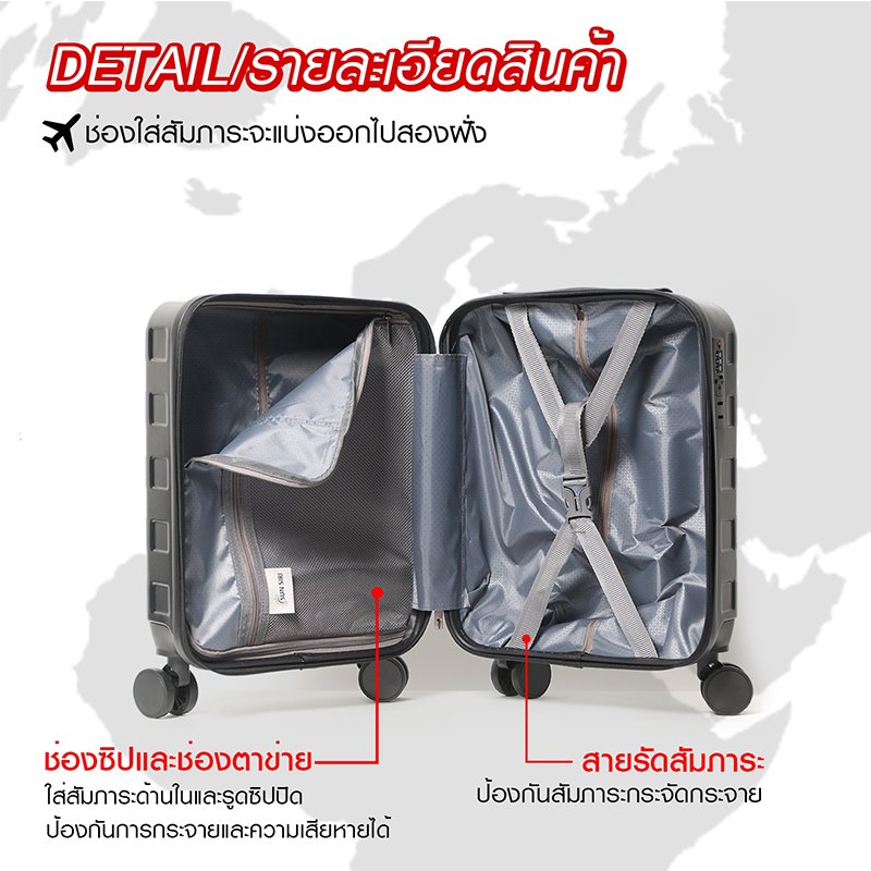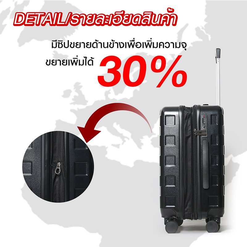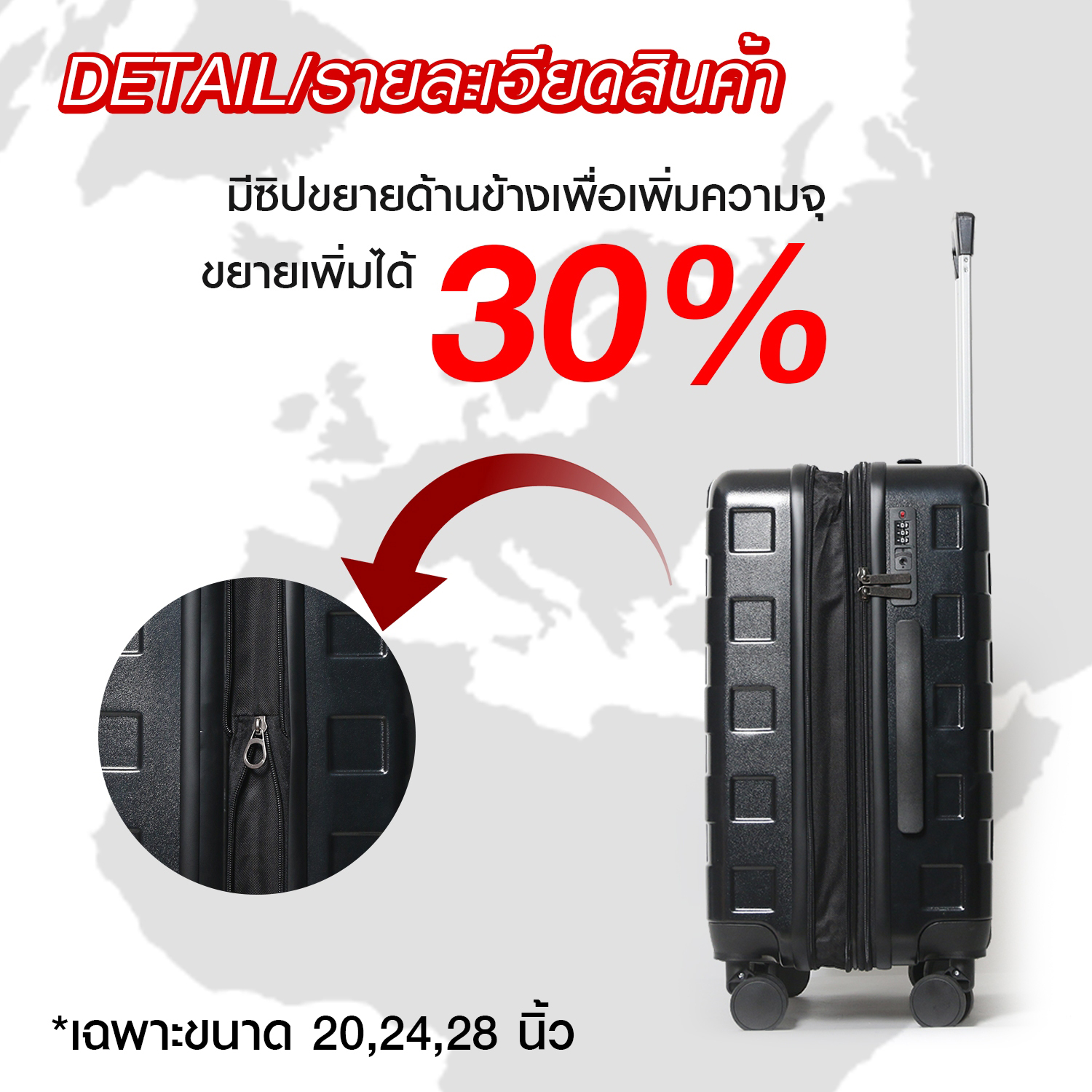 - มีซิปขยาย สำหรับเพิ่มความจุกระเป๋า (มีเฉพาะขนาด 20,24,28 นิ้ว)