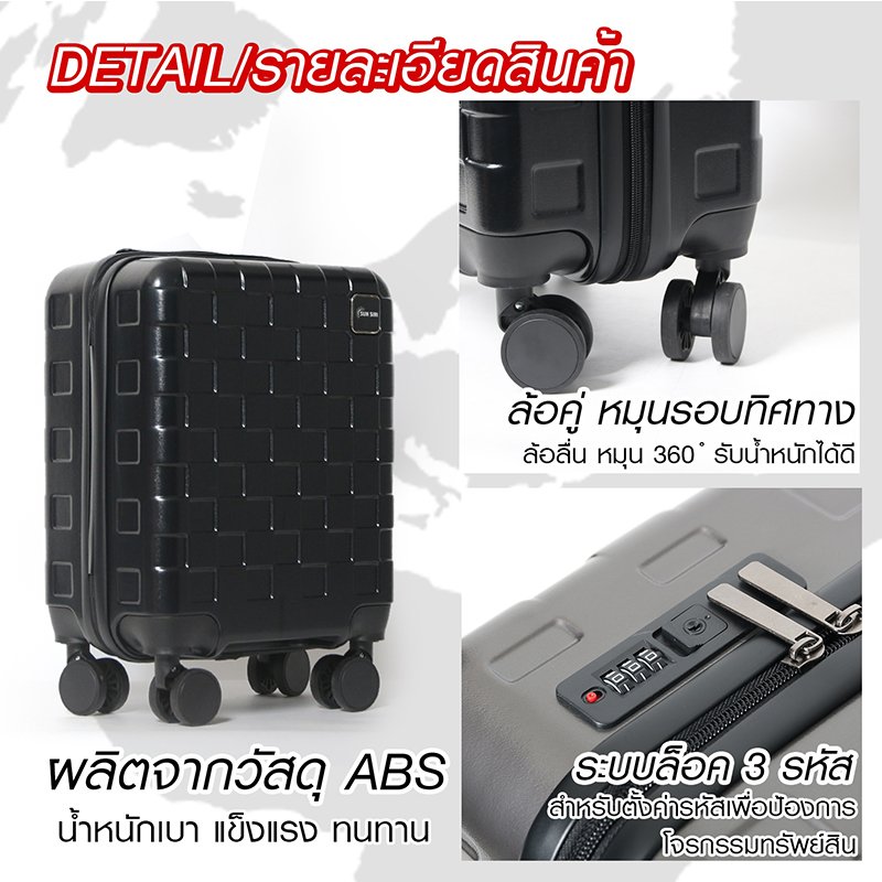 SUN SIRI กระเป๋าเดินทาง ABS 4 ล้อคู่ ระบบล็อค 3 รหัส รุ่น SquareD 8233