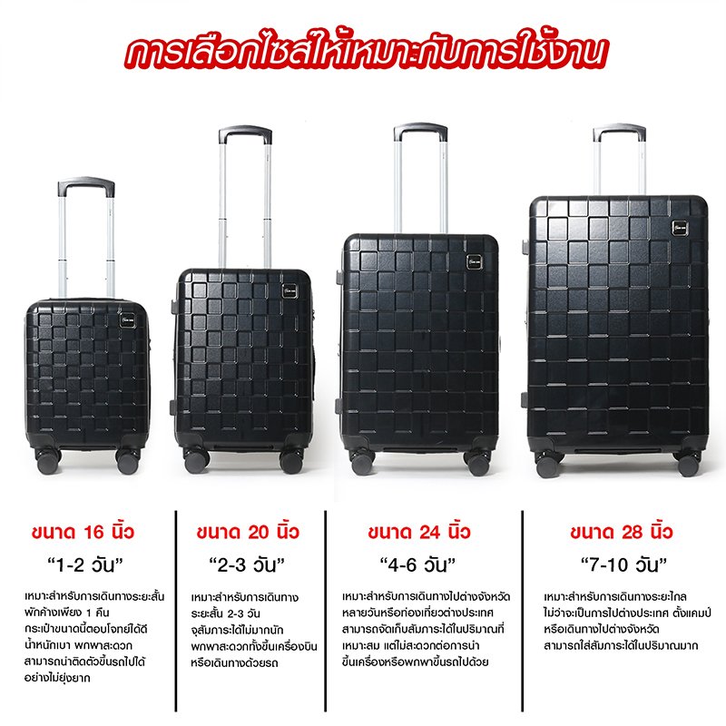 *ขนาดสินค้าวัดรวมหูหิ้ว ล้อ และฐานรองกระเป๋า