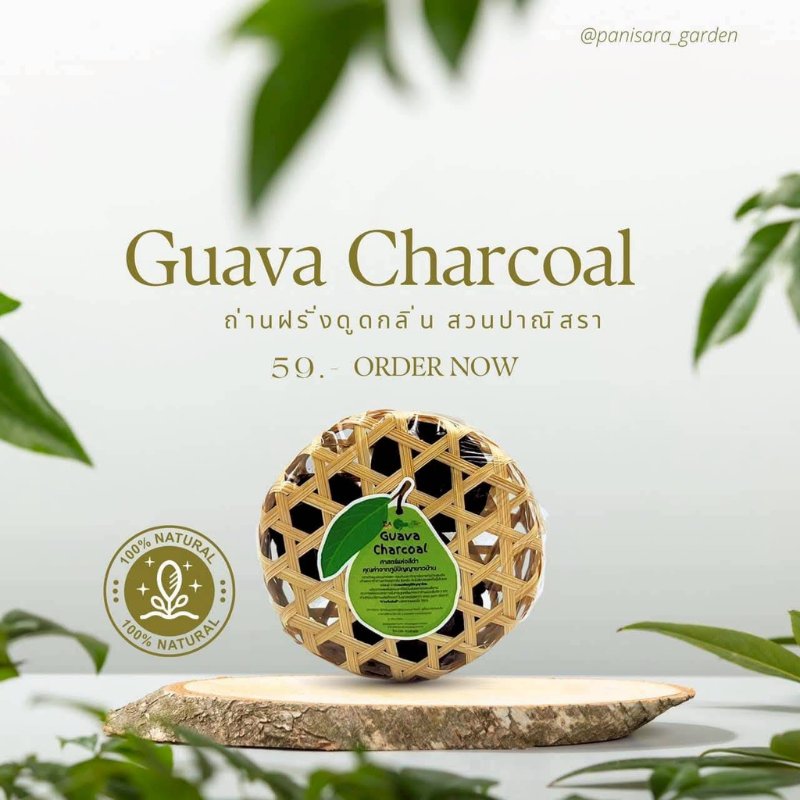 ถ่านดูดกลิ่นรูปผลฝรั่งเป็นงานนวัตกรรมในการดูดกลิ่นอับชื้นในห้องนอน ตู้เสื้อผ้า ชั้นวางรองเท้า รถยนต์ หรือในตู้เย็น ผลิตจากผลฝรั่งอ่อน นำมาเผ่าด้วยกระบวนการพิเศษ เป็นถ่านคุณภาพสูงไม่ติดมือใช้สำหรับดูดกลิ่นไม่พึ่งประสงค์ในที่ต่างๆ